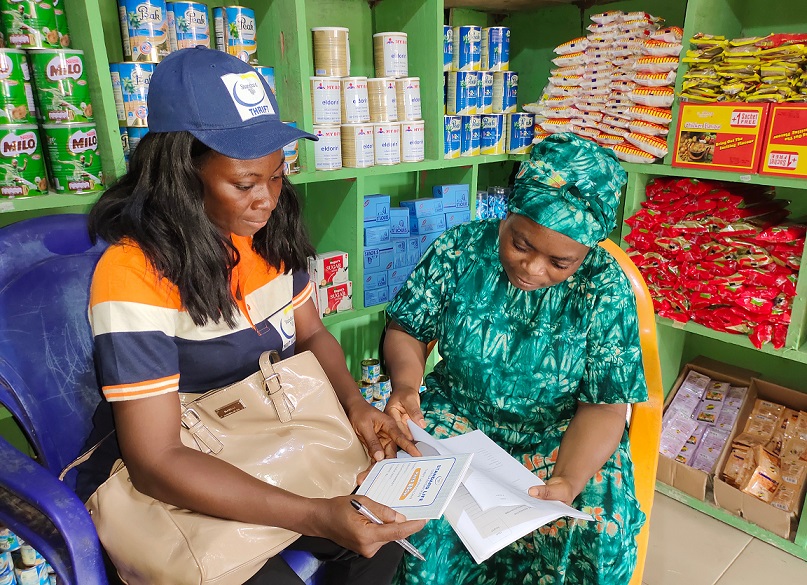 Thrift staff attending to her client